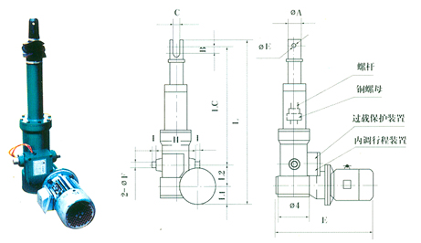 1.結構:電動液壓推桿由驅動電機,減速齒輪、絲桿、蝸輪、蝸桿(DTW型),銅鑼母導套、推桿、滑座、彈簧、外殼、連接頭、行程開關、及內調行程開關(DTW型)所組成,結構緊湊,動作靈敏,安裝方便。DTW型本推桿機體內設有過載保護裝置,當推桿行程到位置或超過額定推力一定數值時,推桿自動停機,達到過載保護作用,使電機及構件不致損壞。